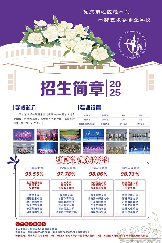 天水藝術學校師資力量雄厚,實踐平臺優(yōu)越,創(chuàng)辦26年來,為省內外藝術院團、高等院校培養(yǎng)、輸送了大批人才。