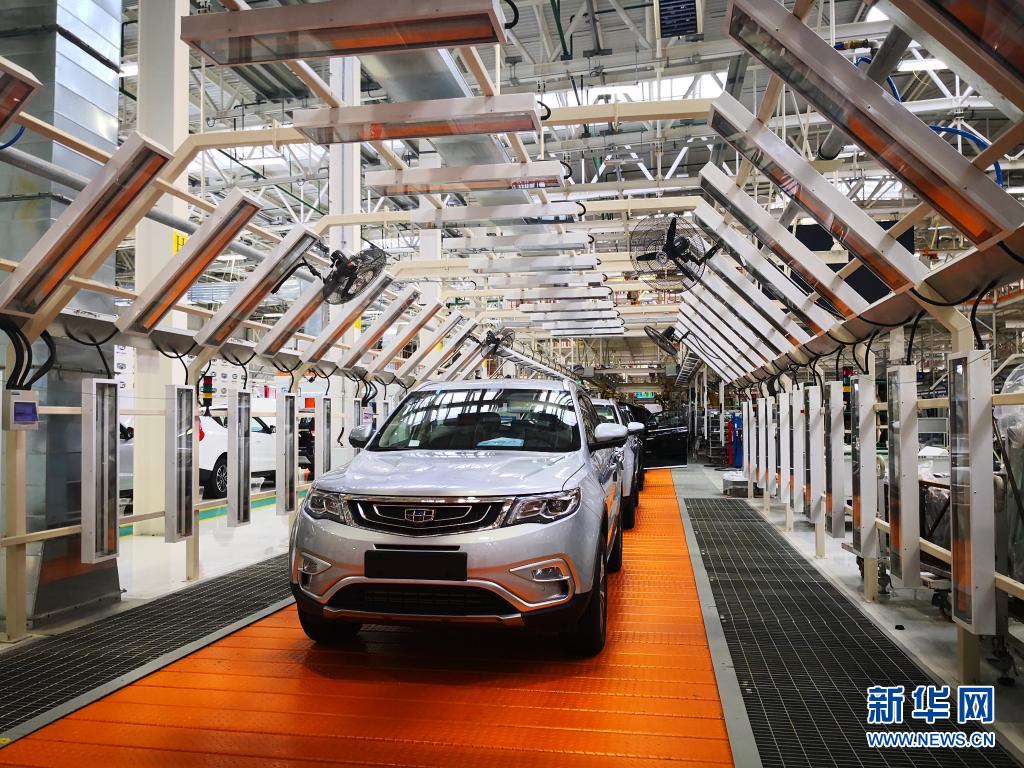這是2018年12月1日在白俄羅斯首都明斯克東北方向50公里處的白俄羅斯吉利全散件汽車制造廠總裝車間拍攝的準(zhǔn)備下線的汽車。新華社記者 張若玄 攝