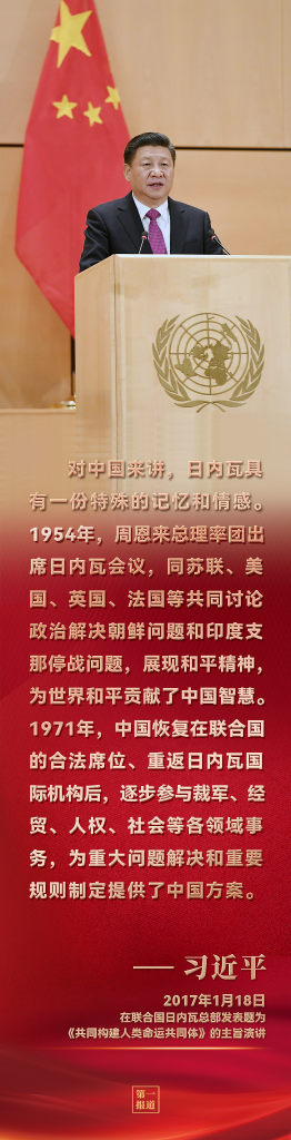 2017年初,聯(lián)合國(guó)日內(nèi)瓦總部,習(xí)近平主席在發(fā)表主旨演講時(shí)特別提到中國(guó)對(duì)日內(nèi)瓦的“一份特殊的記憶和情感”——