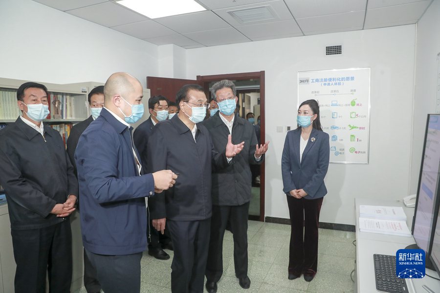 11月1日,中共中央政治局常委、國務院總理李克強到市場監(jiān)管總局考察,并主持召開發(fā)展壯大市場主體工作座談會。這是李克強考察登記注冊局。新華社記者 丁林 攝