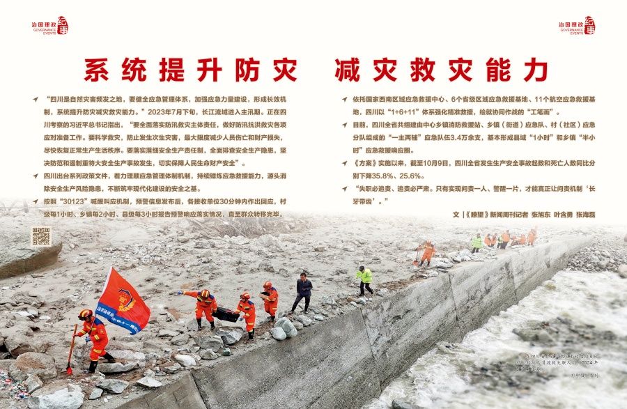 《關(guān)于構(gòu)建應(yīng)急管理職業(yè)共同體加快推進(jìn)應(yīng)急管理體系和能力現(xiàn)代化的意見(jiàn)》《四川省安全生產(chǎn)治本攻堅(jiān)三年行動(dòng)方案(2024—2026年)》……四川出臺(tái)系列政策文件,著力理順應(yīng)急管理體制機(jī)制,持續(xù)錘煉應(yīng)急救援能力,源頭消除安全生產(chǎn)風(fēng)險(xiǎn)隱患,不斷筑牢現(xiàn)代化建設(shè)的安全之基。