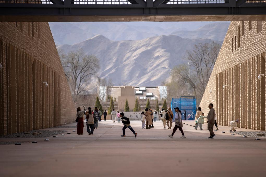 4月5日,游客在寧夏銀川西夏陵景區(qū)內(nèi)游玩。新華社記者 楊植森 攝
