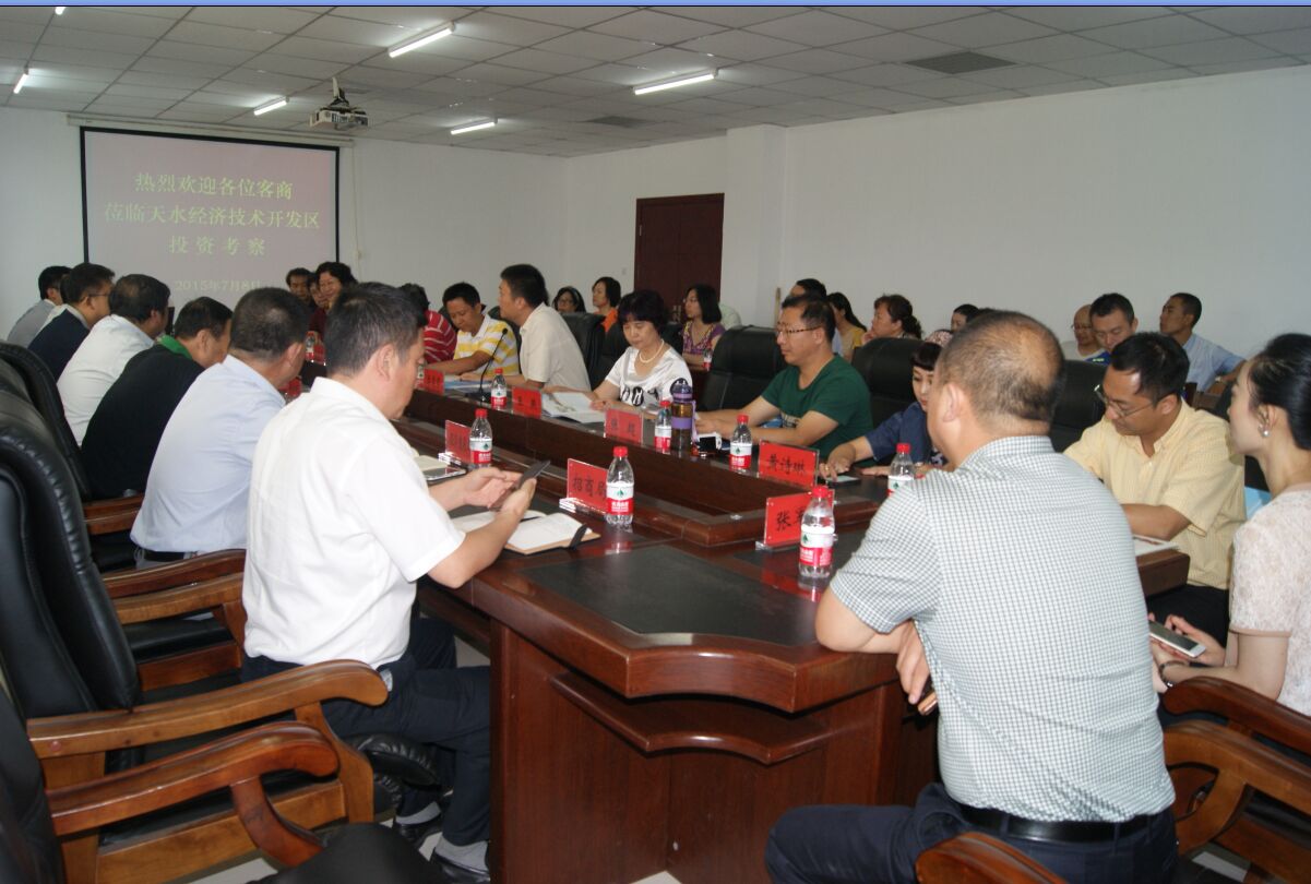 2015年7月8日,廣東省甘肅商會會長李震霄及商會20余名企業(yè)家到天水經(jīng)濟技術(shù)開發(fā)區(qū)社棠工業(yè)園參觀考察,開發(fā)區(qū)管委會副主任陸金良及天水市政府駐廣州辦事處主任、開發(fā)區(qū)駐廣東辦事處主任朱解明等陪同考察。