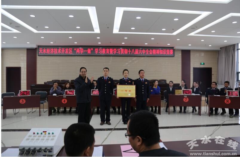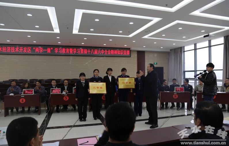 經(jīng)過激烈角逐,最終開發(fā)區(qū)國稅局黨總支代表隊(duì)獲得一等獎(jiǎng);管委會(huì)機(jī)關(guān)支部代表隊(duì)、開發(fā)區(qū)工商分局支部代表隊(duì)獲得二等獎(jiǎng);天水經(jīng)濟(jì)發(fā)展公司和公用事業(yè)管理公司支部聯(lián)合代表隊(duì)、長城電工天電集團(tuán)黨委代表隊(duì)、霞宇環(huán)保支部代表隊(duì)獲得三等獎(jiǎng);開發(fā)區(qū)卷煙廠黨委代表隊(duì)、開發(fā)區(qū)地稅局支部代表隊(duì)和高盛紡織支部代表隊(duì)獲得優(yōu)秀組織獎(jiǎng),比賽取得圓滿成功。