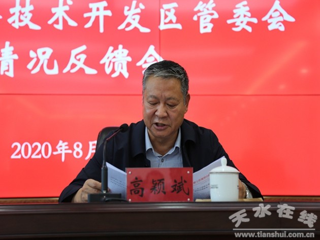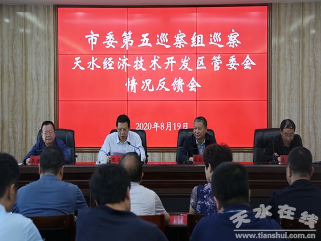 8月19日,市委第五巡察組向天水經(jīng)濟(jì)技術(shù)開發(fā)區(qū)反饋巡察工作情況。市委巡察工作領(lǐng)導(dǎo)小組成員、市紀(jì)委副書記、監(jiān)委副主任熊衛(wèi)三主持會議并講話,市委第五巡察組組長高穎斌、副組長王彥海出席會議,開發(fā)區(qū)管委會在家領(lǐng)導(dǎo)班子成員,管委會機(jī)關(guān)全體干部職工,派駐機(jī)構(gòu)、東十里、二十鋪管委會負(fù)責(zé)人,經(jīng)濟(jì)發(fā)展公司、投資擔(dān)保公司、第一小學(xué)及幼兒園共計80余人參加會議。
