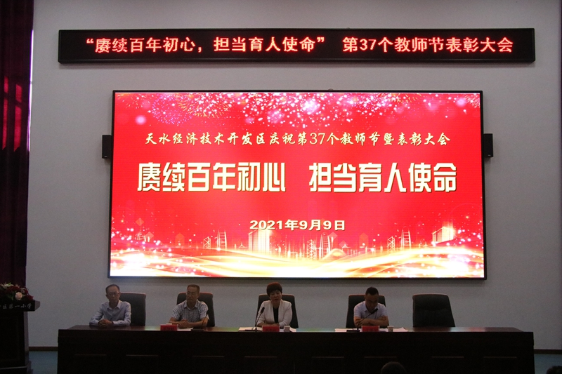 9月9日,天水經(jīng)濟技術(shù)開發(fā)區(qū)召開慶祝第37個教師節(jié)表彰會議,總結(jié)經(jīng)開區(qū)教育事業(yè)一年來的發(fā)展成就,表彰教育戰(zhàn)線涌現(xiàn)出的先進典型,進一步動員經(jīng)開區(qū)全體教師堅定信心、振奮精神、扎實工作,奮力開創(chuàng)新時代經(jīng)開區(qū)教育事業(yè)高質(zhì)量發(fā)展新局面。