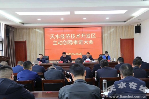 為全面貫徹省、市主動(dòng)創(chuàng)穩(wěn)工作會(huì)議精神,深入踐行“三抓三促”行動(dòng),全力推動(dòng)經(jīng)開區(qū)主動(dòng)創(chuàng)穩(wěn)工作各項(xiàng)任務(wù)落地落實(shí),4月6日,天水經(jīng)開區(qū)召開主動(dòng)創(chuàng)穩(wěn)工作推進(jìn)會(huì)。會(huì)議傳達(dá)了省、市委主動(dòng)創(chuàng)穩(wěn)推進(jìn)大會(huì)精神,宣讀了《天水經(jīng)濟(jì)技術(shù)開發(fā)區(qū)主動(dòng)創(chuàng)穩(wěn)實(shí)施方案》。