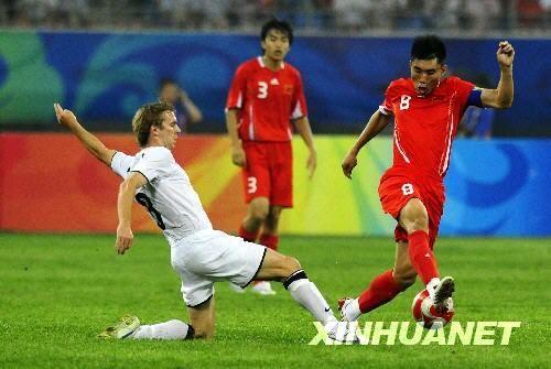 北京時間8月7日19:45,2008北京奧運會男足C組的首輪比賽在沈陽奧體中心打響,中國國奧隊迎戰(zhàn)新西蘭國奧隊。開場3分鐘韓鵬頭球擊中橫梁,第28和38分鐘,新西蘭隊奧爾德連得兩張黃牌被罰下。但多一人應戰(zhàn)的中國隊仍難占優(yōu)勢,第52分鐘布羅基反越位成功打進單刀球,第75分鐘姜寧射門再中橫梁,第87分鐘,替補登場的董方卓頭球破門,最終以多打少的中國隊以1-1戰(zhàn)平新西蘭,董方卓的這個進球也是中國男足在奧運會上的首粒進球。同組巴西1比0勝比利時,巴西暫居小組第一,中國與新西蘭并列小組第二。