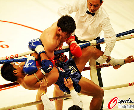 北京時(shí)間3月19日晚,第五屆國(guó)際武術(shù)搏擊王爭(zhēng)霸賽--2010年中泰拳王爭(zhēng)霸賽在重慶開(kāi)打。在今天進(jìn)行的三場(chǎng)比賽中,中國(guó)隊(duì)取得了2勝1負(fù)的成績(jī)。第一場(chǎng)比賽劉層層第四回合KO泰國(guó)第一個(gè)高手朗塞,為中國(guó)隊(duì)贏得開(kāi)門紅。隨后草原蒼鷹巴特爾僅用時(shí)一回合便致對(duì)手左臂脫臼退賽。最后一場(chǎng)比賽,曹耀民點(diǎn)數(shù)憾負(fù)泰國(guó)選手威漢。