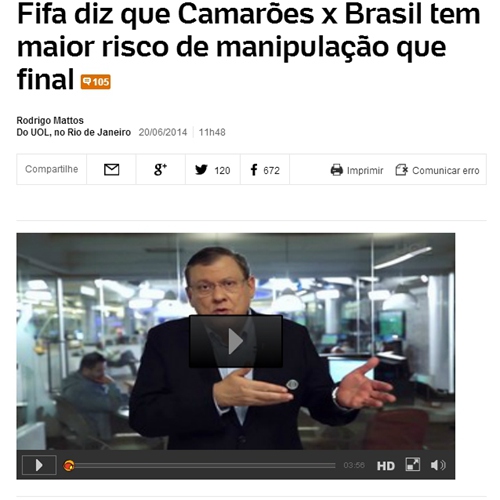 小組賽第三輪尚未開戰(zhàn),國際足聯(lián)卻傳出假球消息。據(jù)巴西媒體UOL報道稱,F(xiàn)IFA正在調(diào)查巴西世界杯的參賽球員和裁判,以防止比賽結(jié)果被幕后黑手人為操控,而分析結(jié)果顯示,將在巴西與喀麥隆之間進(jìn)行的小組賽涉嫌被亞洲博彩公司操控。