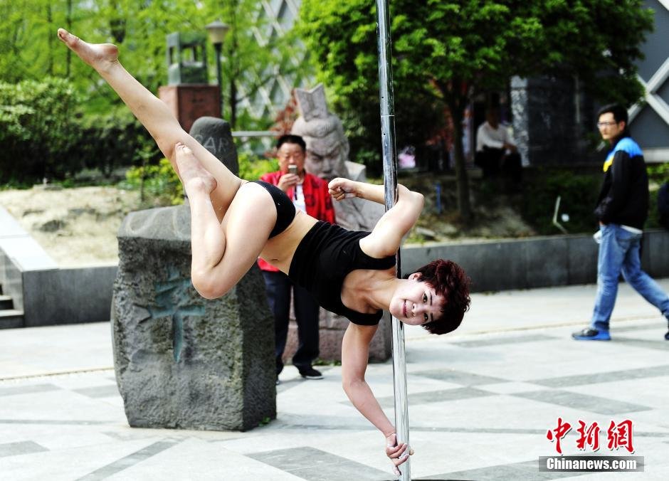 國(guó)家鋼管舞隊(duì)員成都街頭秀絕技(組圖)