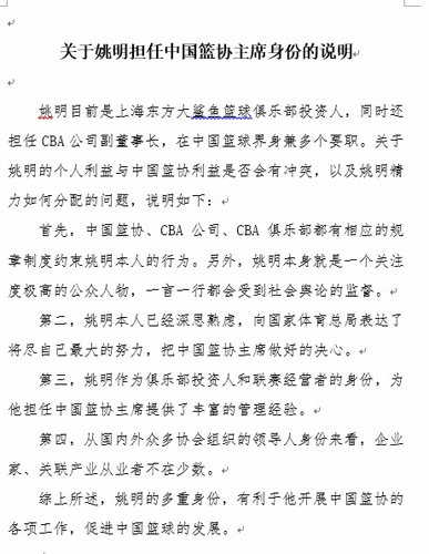 新京報(bào)快訊 (記者肖萬(wàn)里)盡管中國(guó)籃協(xié)的換屆選舉要等到3月才進(jìn)行,但種種跡象表明,姚明擔(dān)任新一屆籃協(xié)主席已成定局。新京報(bào)記者昨晚了解到,相關(guān)方面已經(jīng)出具了《關(guān)于姚明擔(dān)任中國(guó)籃協(xié)主席身份的說(shuō)明》。在這份說(shuō)明中,姚明中國(guó)籃協(xié)主席的身份已經(jīng)確定。