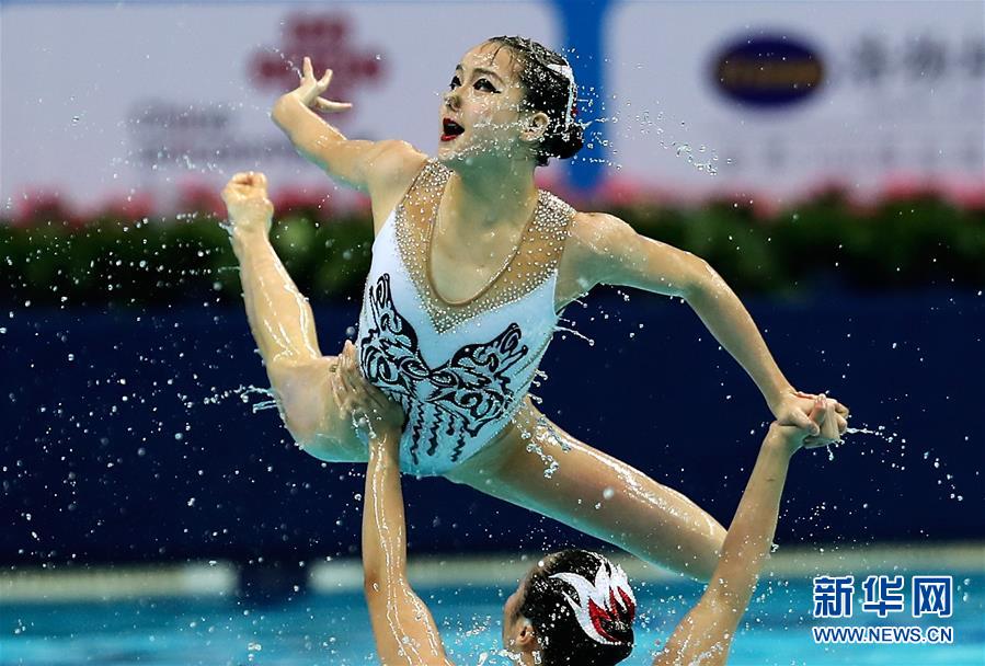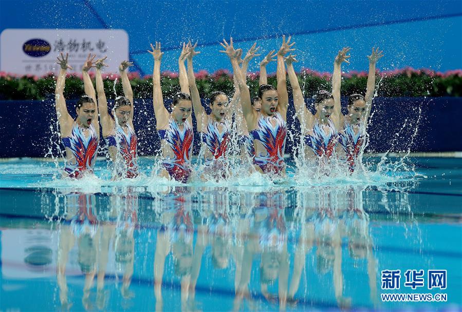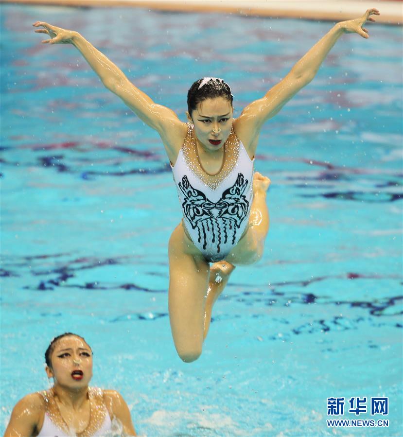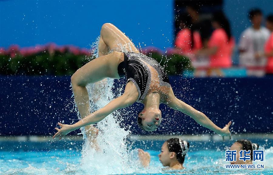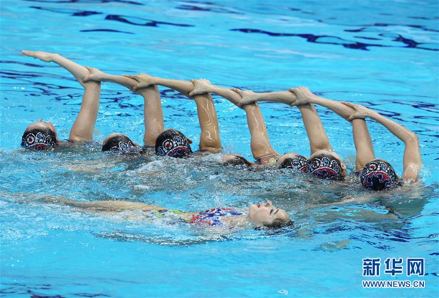 5月17日,四川隊(duì)選手在集體自由自選項(xiàng)目預(yù)賽中,她們以88.6667的總成績(jī)排名第三。新華社發(fā)(張譽(yù)東攝) |