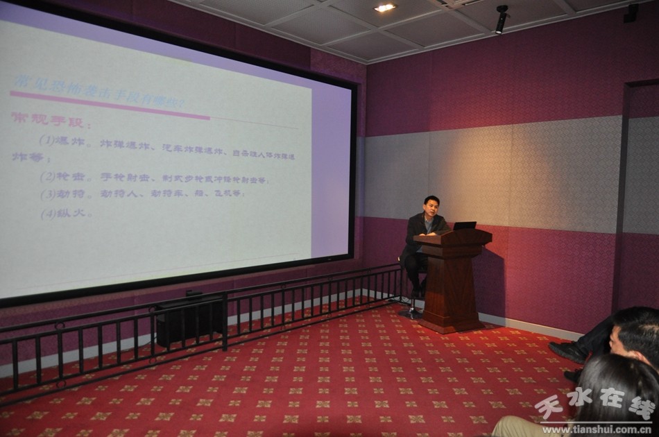 11月21日上午,天水市博物館在陳列館多媒體數(shù)字影院舉辦全館“反恐防暴”安全知識講座,由保衛(wèi)科科長鄧光輝主講,約70多人參加了講座。