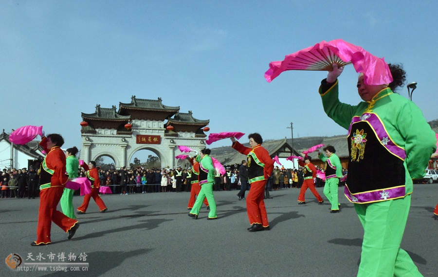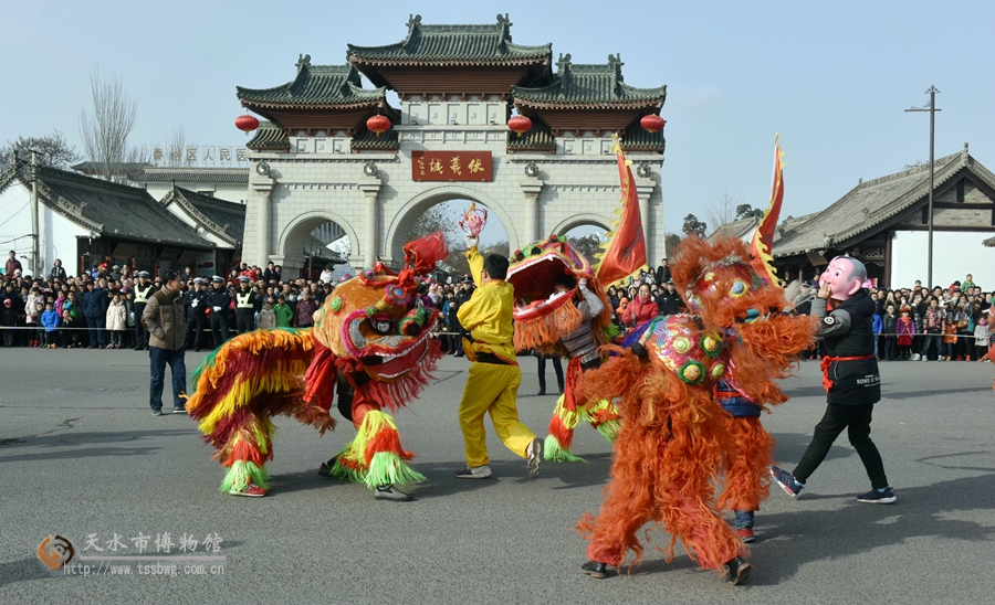 2月8(農(nóng)歷正月十二)日,秦州區(qū)春節(jié)民間藝術(shù)匯演的隊伍在伏羲城東門前表演社火,一些社火演出隊自發(fā)來到伏羲廟內(nèi)演出,表達了人們對中華民族人文始祖太昊伏羲的敬仰。