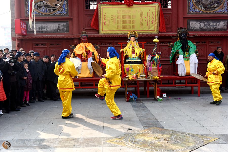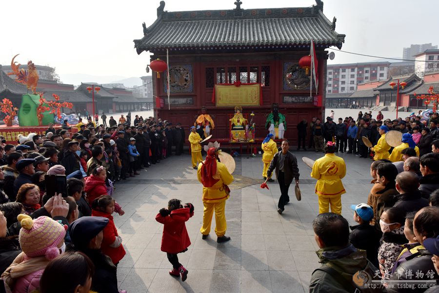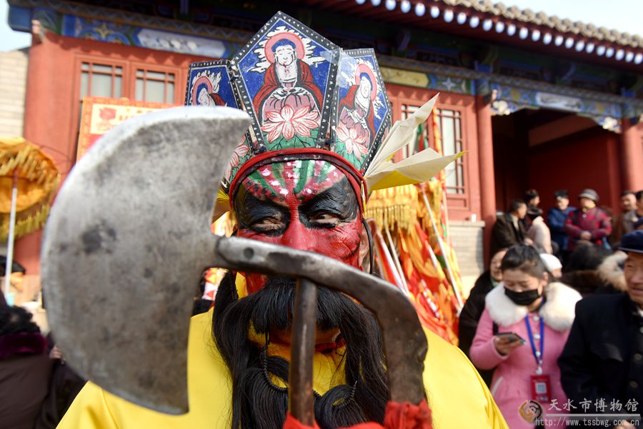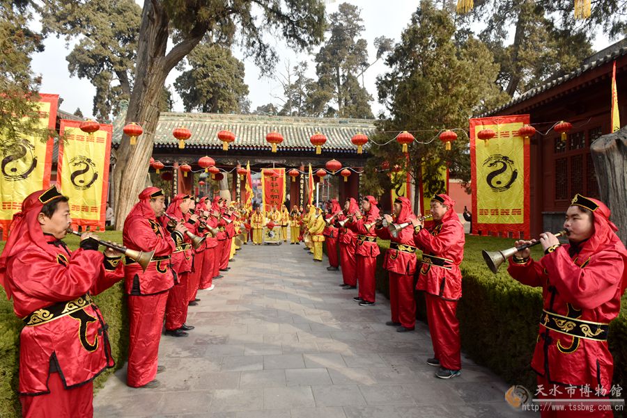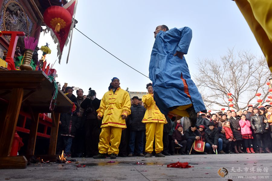 2月11日(農(nóng)歷正月十五日)上午,伏羲廟戲樓前青煙繚繞,古樂(lè)悠悠。伴隨著羊皮鼓“咚咚”的樂(lè)曲,中國(guó)最古老的祭祀儀式——開(kāi)山攢神儀式正在這里隆重舉行。楊朝水等6位祭司身著傳統(tǒng)服飾,邁著神秘近乎癡狂的舞步,為廣大群眾展示了這一傳統(tǒng)而又神秘的祭祀儀式。