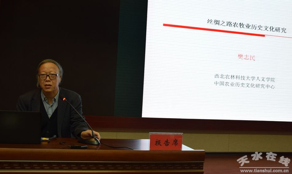 (西北農(nóng)林科技大學(xué)人文學(xué)院、中國農(nóng)業(yè)歷史文化研究中心樊志民做《絲綢之路農(nóng)業(yè)歷史文化研究》學(xué)術(shù)報告)