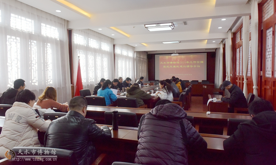 1月28日,天水市博物館在暢和軒召開2019年工作安排暨黨風(fēng)廉政建設(shè)輔導(dǎo)會(huì),會(huì)議由市博物館黨支部書記、館長(zhǎng)李寧民主持,天水市紀(jì)委監(jiān)委第三派駐紀(jì)檢監(jiān)察組副組長(zhǎng)王鐵軍應(yīng)邀出席會(huì)議,副館長(zhǎng)高世華、劉玉璞、管玉、汪保全以及各部室主任近30人參加會(huì)議。