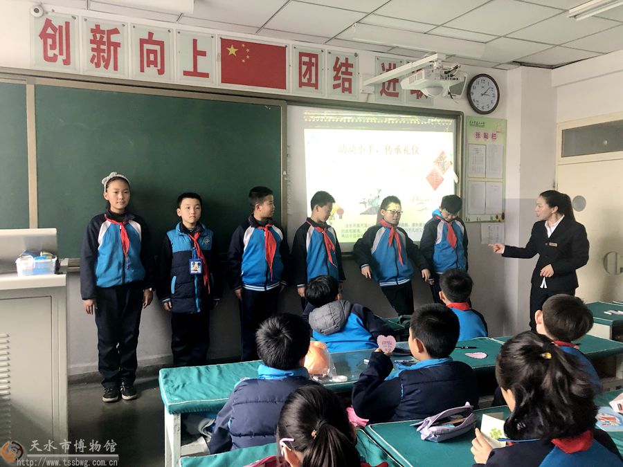 中國(guó)是禮儀之邦,從西周的周禮制度到現(xiàn)代的五講四美,從荀子的“國(guó)無(wú)禮而不寧”到今天的精神文明建設(shè),禮儀一直是中國(guó)傳統(tǒng)文化的核心,作為新世紀(jì)的小學(xué)生,作為祖國(guó)的未來(lái)和民族的希望,更應(yīng)該傳承和弘揚(yáng)中華民族的優(yōu)秀傳統(tǒng),做無(wú)愧于新時(shí)代社會(huì)主義建設(shè)者和接班人。3月7日,天水民俗博物館的“禮儀中國(guó)”系列社教活動(dòng)走進(jìn)了建二小學(xué)的第二課堂,課堂上由民俗館的工作人員和同學(xué)們一起學(xué)習(xí)了中華傳統(tǒng)禮儀。
