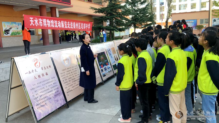 為了使博物館教育活動更好地與學(xué)校教育進行銜接,發(fā)揮好博物館的教育資源優(yōu)勢,積極開展青少年教育工作。10月17日下午,天水市博物館流動展覽走進了天水市秦州區(qū)皂郊中學(xué)。展覽內(nèi)容分為《一畫開天 肇啟文明——人祖伏羲功績展》和《天水市博物館館藏精品文物展》兩部分。講解員通俗有趣的解說讓學(xué)生對博物館館藏精品產(chǎn)生了更直觀的印象。
