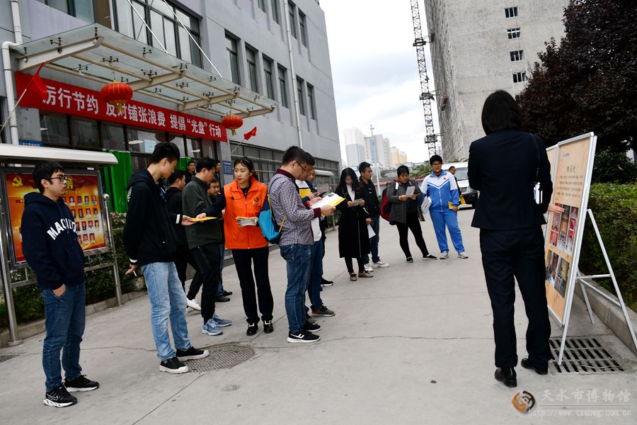 為大力弘揚(yáng)社會(huì)主義核心價(jià)值觀和天水優(yōu)秀傳統(tǒng)文化,講好文物故事,進(jìn)一步發(fā)揮博物館的公共文化職能,天水市博物館特別策劃了“弘揚(yáng)傳統(tǒng)文化、講好中國(guó)故事”主題系列“四進(jìn)活動(dòng)”。在進(jìn)社區(qū)、進(jìn)學(xué)校、進(jìn)部隊(duì)活動(dòng)開(kāi)展獲得了良好反響之后,該館又開(kāi)展了“流動(dòng)展覽”走進(jìn)企業(yè)社會(huì)宣教活動(dòng)。