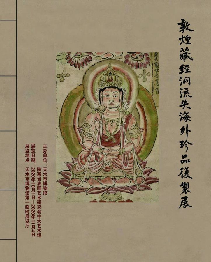 10月1日,由天水市博物館和陜西省油畫藝術(shù)研究會中大藝術(shù)館主辦的“敦煌藏經(jīng)洞流失海外珍品復(fù)制展”在天水市博物館臨時展廳展出。展覽展出敦煌藏經(jīng)洞流失在國外的珍品復(fù)制品,時代自南北朝至宋,包括絹本畫、紙本畫、雕版印刷佛經(jīng)等、書法作品等58件。展品復(fù)制了現(xiàn)藏于英國不列顛博物館、法國國家圖書館、法國集美亞洲藝術(shù)博物館、美國大都會藝術(shù)博物館、美國哈佛大學(xué)圖書館、美國弗利爾藝術(shù)博物館等館的文物。制作過程中基于原作無損掃描,采用礦物質(zhì)顏料,手工織絹和手工造紙,最大限度復(fù)原了文物的原貌。