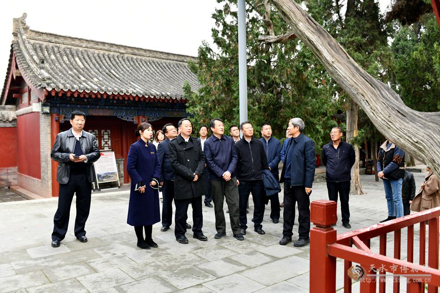 甘肅省公安廳治安管理局局長(zhǎng)張育暉,省文物局黨組成員、副局長(zhǎng)陳于柱,市政府副市長(zhǎng)、市公安局局長(zhǎng)郭慶祥等領(lǐng)導(dǎo)一同調(diào)研。天水市博物館館長(zhǎng)李寧民匯報(bào)市博物館文物安全等工作。