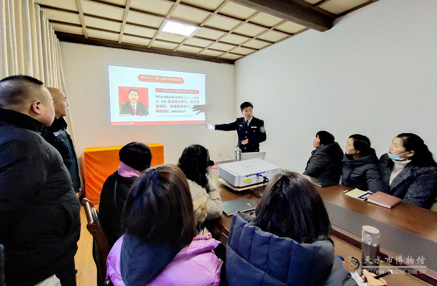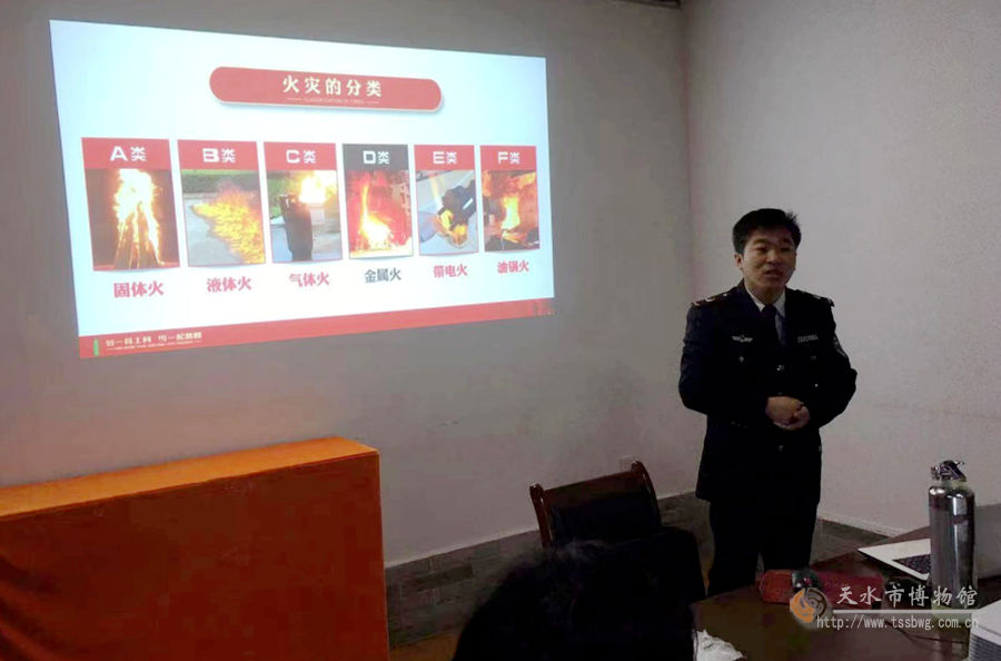 為認(rèn)真貫徹落實(shí)天水市文化和旅游局關(guān)于迅速開展文物安全隱患大排查的通知,著力防范化解安全風(fēng)險(xiǎn)和有效排查整治各類事故隱患,有效遏制安全事故發(fā)生,確保我館文物安全形勢(shì)持續(xù)平穩(wěn),11月23日上午,天水民俗博物館邀請(qǐng)政安消防培訓(xùn)中心,在銀杏院會(huì)議室對(duì)我館全體職工進(jìn)行消防安全專題講座。