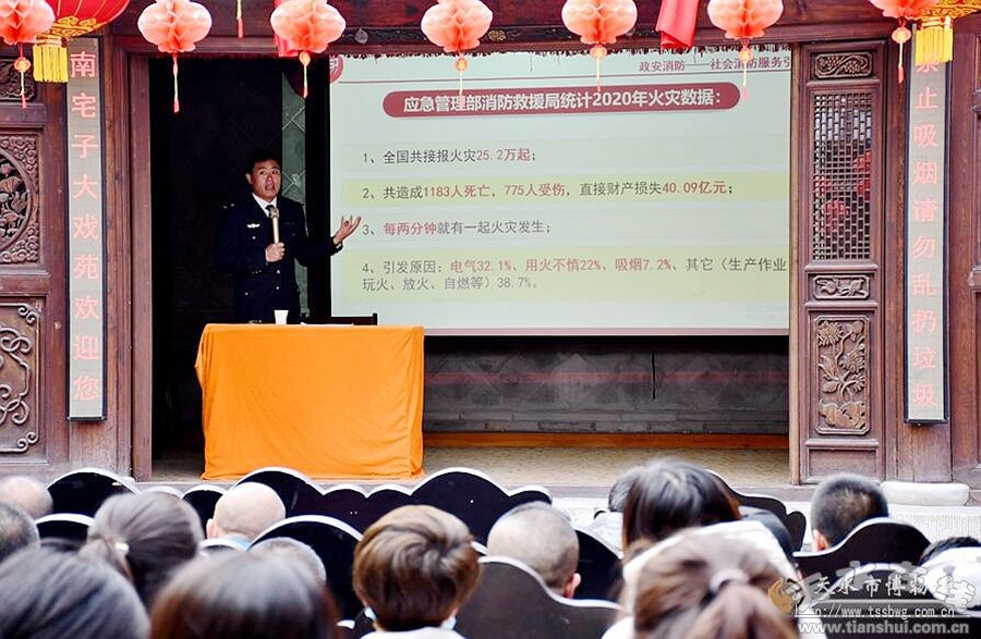 為了進一步加強春季火災防控工作,積極落實天水市博物館“提高安全意識、整治火災隱患、化解火災風險”防控措施,推進安全生產(chǎn)專項整治三年行動深入開展,確保民俗館文物古建安全,切實提高消防應急處置能力。3月15日,天水民俗博物館特邀消防宣傳員張小龍開展了消防安全知識培訓,并組織了消防應急疏散演練,60多名職工參加了培訓和演練。