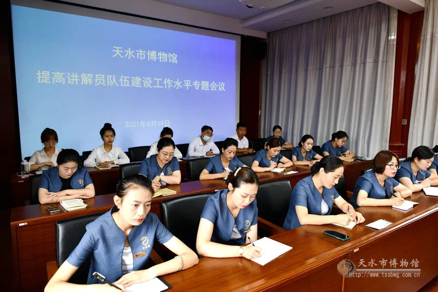 8月19日,天水市博物館召開(kāi)提高講解員隊(duì)伍建設(shè)工作水平專(zhuān)題會(huì)議,天水市博物館黨總支書(shū)記、館長(zhǎng)劉玉璞,副館長(zhǎng)崔文剛,辦公室、社會(huì)服務(wù)部、天水民俗博物館負(fù)責(zé)人及全體講解員參加會(huì)議。