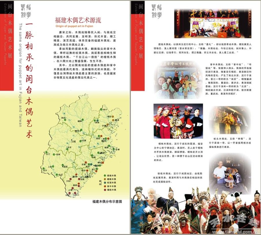 天水市博物館與福建中國(guó)閩臺(tái)緣博物館合作舉辦的展覽《閩臺(tái)木偶藝術(shù)展》原計(jì)劃于11月1日在天水市博物館陳列館第一臨時(shí)展覽廳與廣大觀眾見(jiàn)面。但受“疫情”影響,此展覽目前將在天水市博物館官網(wǎng)以線上展覽的形式與大家見(jiàn)面,歡迎瀏覽!