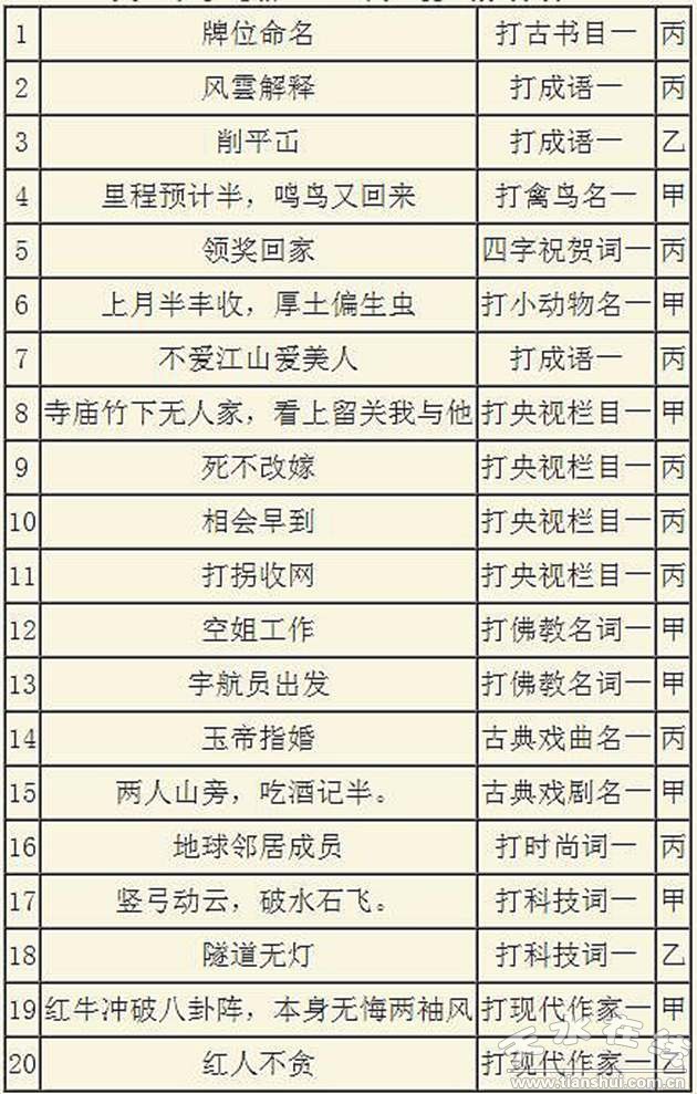 2022年天水伏羲廟網上燈謎競猜活動(四)謎面及謎底