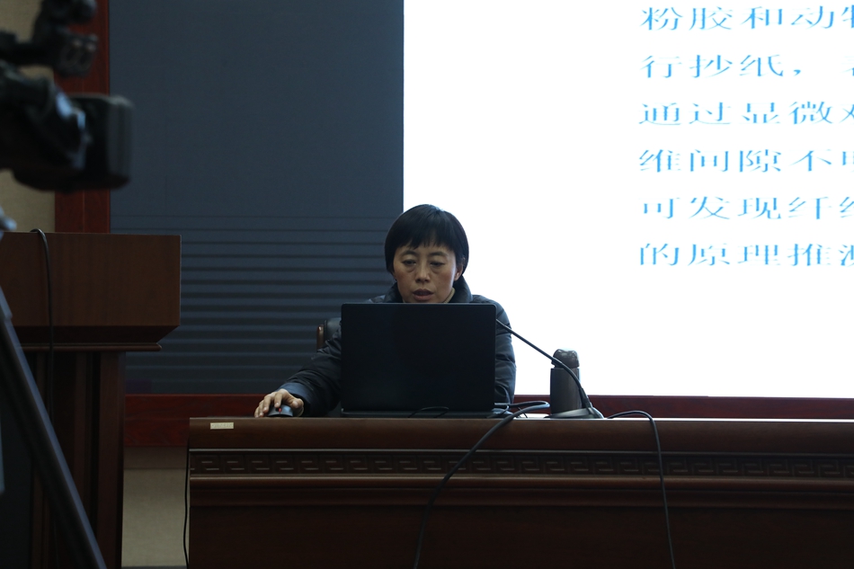6日上午,由館內副研究館員劉繼萍、陳紅波、王小應分別就自己承擔的已結項課題研究成果作了分享。市博物館文物保護修復中心主任、文博副研究館員劉繼萍通過研究認為運用現(xiàn)代分析技術對明清書畫作品及裝裱用紙進行纖維檢測和顯微觀察,可以幫助我們更好的了解明清時期書畫用紙原料及造紙工藝等信息特征,為紙質文物的保護修復提供科學依據(jù)。