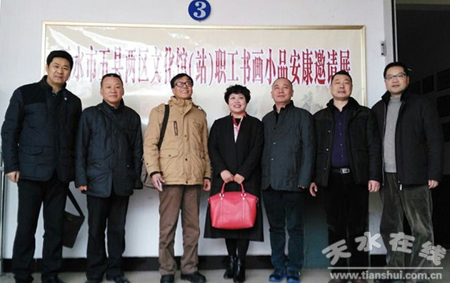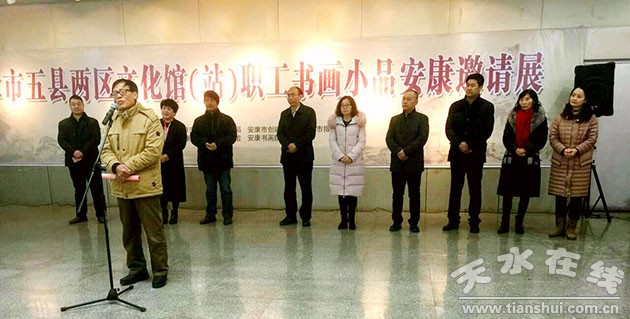 2016年12月29日,天水市五縣兩區(qū)文化館(站)職工書畫小品邀請展開幕式在安康市群眾藝術(shù)館舉行。安康市文化文物廣電局副局長周傳恩,安康市群藝館館長周墻,陜西省書協(xié)副主席、安康市書協(xié)主席馬昌騏,天水市文化館副館長曹文成,安康市群藝館全體職工,以及來自遠近兄弟單位的文藝人員近200余人出席了開幕式。