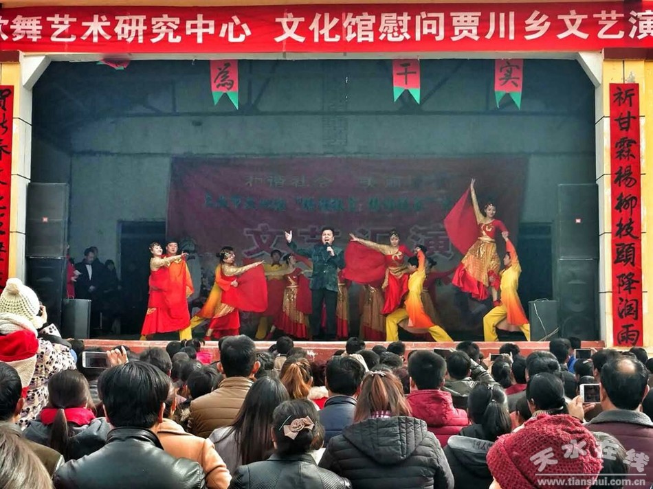 2月5日(正月初九日),正值陽(yáng)灣村普濟(jì)寺文化廟會(huì)期間,由天水市文化館、天水市歌舞藝術(shù)研究中心聯(lián)合主辦,賈川鄉(xiāng)人民政府承辦的“精準(zhǔn)扶貧、精準(zhǔn)脫貧”文藝匯演在賈川鄉(xiāng)陽(yáng)灣村王寺文化廣場(chǎng)精彩上演。