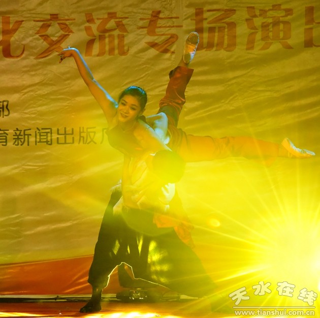 天水市著名節(jié)目主持、市文化館副研究館員曹文成表演的詩(shī)朗誦《祖國(guó)之秋》、天水市歌舞藝術(shù)研究中心國(guó)家二級(jí)演員、男高音楊濤表演的《回族花兒》、《西部放歌》、天水市文化館館員、聲樂(lè)演員王小艷演唱的《康美之戀》、《喜慶的日子》、天水市文化館舞蹈演員孫雨辰、龐鵬飛表演的雙人舞《紅高粱隨想》等讓觀眾激情澎湃,熱烈歡呼。