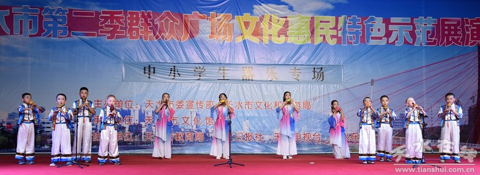 8月11日晚20:00時(shí),由天水市委宣傳部、天水市文化和旅游局、天水市秦州區(qū)委宣傳部主辦,天水市文化館、秦州區(qū)文化廣播影視局承辦的 “天水市廣場群眾性文化示范展演”中小學(xué)生器樂專場在龍城廣場精彩上演。