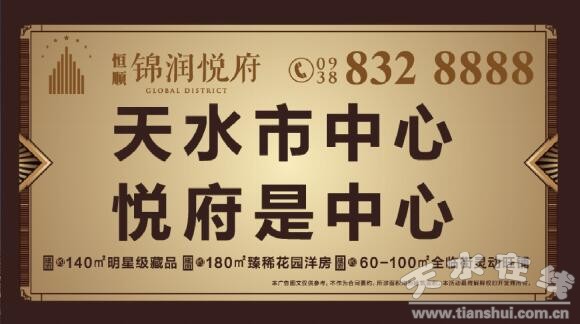 恒順·錦潤悅府是恒順地產(chǎn)匠心雕琢的一部“瑰寶作品”,它落子天水整個城市能量最集中的板塊,也就是成紀(jì)新城中央!“把世界繁華引入天水”是恒順·錦潤悅府的理想和使命!它在中央公園之上,錦潤悅府更借鑒世界上層建筑的精粹,引入了國際名品商業(yè),打造城央超大建筑集群生活平臺!涵括了7C寫字樓、國際商街、七星級會所、I MAX影院、精裝SOHO公寓、電梯花園洋房、公園別墅等多元業(yè)態(tài),它將成為天水“市中心”!