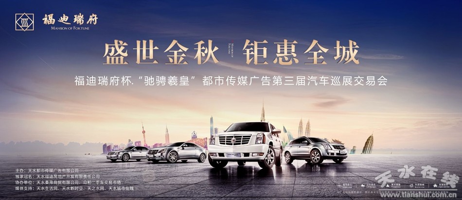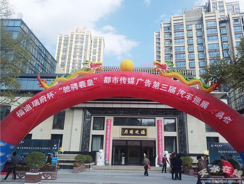 11月2日, 由天水都市傳媒廣告有限公司主辦,天水秦豫商貿(mào)有限公司、眾和二手車交易市場協(xié)辦,天水福迪房地產(chǎn)開發(fā)有限責(zé)任公司獨(dú)家冠名的盛世金秋·鉅惠全城,“福迪瑞府杯·馳騁羲皇”都市傳媒廣告第三屆汽車巡展交易會在福迪瑞府廣場盛大開幕。