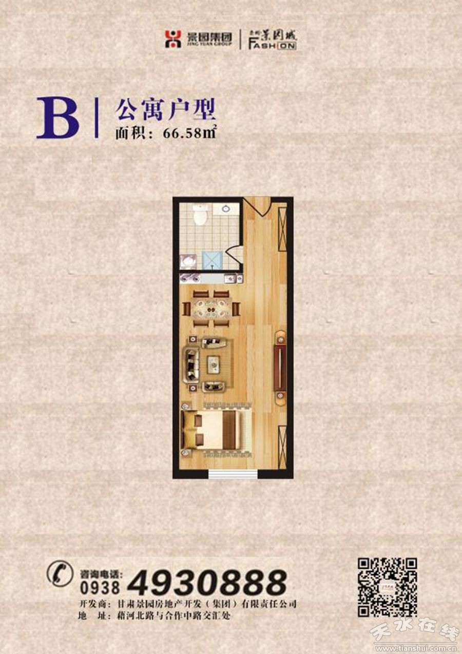 秦州·景園城百變公寓 為您打造專屬空間,60-80㎡精品公寓,樓上辦公樓下放松,一種投資N種用途,為您打造最佳的夢想居所。