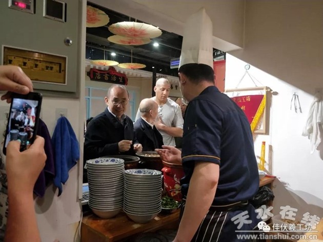潘石屹與伏羲工坊負(fù)責(zé)人曹總就非遺文化、美食的傳承和發(fā)展進(jìn)行了交流,曹總提出了家鄉(xiāng).家香的概念以及對伏羲工坊非遺傳承未來的前景和規(guī)劃,潘總非常贊同伏羲工坊民俗文化與特色美食結(jié)合的經(jīng)營理念,對伏羲工坊的環(huán)境、衛(wèi)生、服務(wù)等各個方面進(jìn)行了充分肯定,并對家鄉(xiāng)天水特色文化產(chǎn)業(yè)的未來表達(dá)了殷切期望!