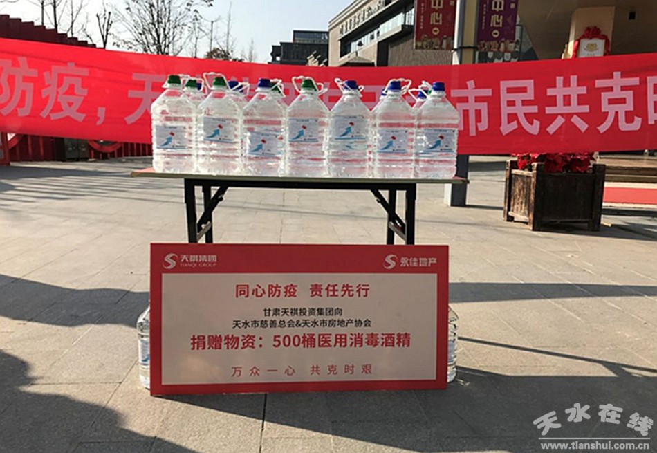 疫情就是命令,防控就是責(zé)任!甘肅天祺投資集團(tuán)切實踐行企業(yè)社會責(zé)任,全面吹響抗擊疫情的號角,2月4日為天水市募捐500桶醫(yī)用消毒酒精,用于防控防疫工作。