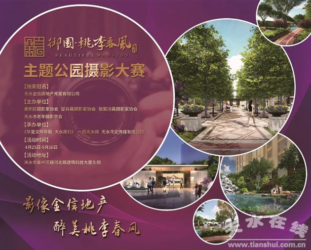 為了充分展示御園·桃李春風的園林之美,《華夏文明導報·天水周刊》、一周天水網(wǎng)、天水華文傳媒有限公司攜手天水金信房地產(chǎn)開發(fā)有限公司聯(lián)合推出“影像金信地產(chǎn),醉美桃李春風”天水攝影師聚焦御園·桃李春風主題公園攝影大賽暨抖音大賽活動。屆時,攝影師們將對御園·桃李春風的建筑風格、人文景觀、園林綠化等最能代表和體現(xiàn)其宜居環(huán)境的軟、硬件設施配置跟蹤拍攝,以求用鏡頭展現(xiàn)金信地產(chǎn)的匠心、奉獻精神。