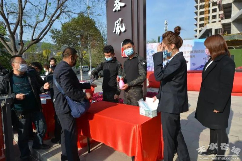 當(dāng)日早8時多,記者在現(xiàn)場看到,參賽人員在入口處進行體溫測量、消毒、領(lǐng)取口罩、實名登記等工作。據(jù)悉,24日,御園·桃李春風(fēng)對活動現(xiàn)場進行了全面消殺。