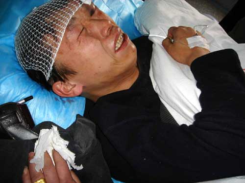 隨后,記者在永登縣醫(yī)院了解到,事故發(fā)生后,該院出動(dòng)4輛急救車,接到受傷的人員13人。一名正在接受治療的售票員告訴記者,車內(nèi)當(dāng)時(shí)有45名乘客,事故發(fā)生時(shí),坐在前排的兩名乘客由于巨大的慣性被拋出車外,受傷嚴(yán)重。一名20來(lái)歲、頭部受傷的乘客告訴記者,他坐在右側(cè)的最前排,車禍瞬間發(fā)生,他被一股巨大的力量從座位上“托”了起來(lái),從車前方甩了出去,緊接著一頭栽到路上,并滾到了卡車底下。說(shuō)起驚魂的那一瞬,他和前來(lái)看望他的家人都哭了起來(lái)。隨后記者從醫(yī)生處了解到,該乘客的頭部軟組織裂傷,需進(jìn)一步觀察治療。