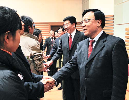 12月28日晚,省委書記、省人大常委會主任陸浩,省委副書記、省長徐守盛等省領(lǐng)導(dǎo)親切接見了“感動甘肅·2007十大隴人驕子”候選人。本報記者呂建榮攝