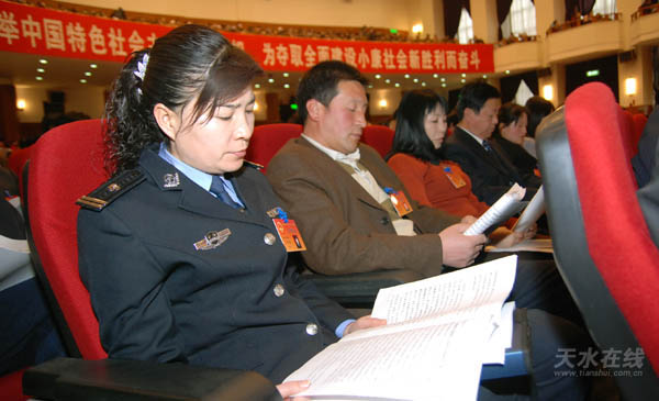 我市省人大代表聆聽報告(圖片拍攝:天水在線)
