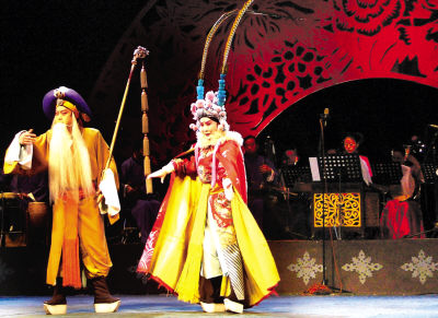 昨天是第三個(gè)全國(guó)文化遺產(chǎn)日,由省文化廳舉辦的“國(guó)家級(jí)非物質(zhì)文化遺產(chǎn)名錄傳統(tǒng)戲劇、曲藝調(diào)演”,昨晚在人民劇院上演。來(lái)自省秦劇團(tuán)、省隴劇院以及平?jīng)、天水、武威、皋蘭的戲曲藝術(shù)家和演員,為觀眾演出了《蘭州鼓子》、《甘肅秦腔》、《西峰嗩吶》、《秦安小曲》、《涼州孝賢》、《環(huán)縣道情皮影》等精彩的“非遺”傳統(tǒng)戲曲。圖為秦腔名家精彩演出。本報(bào)記者張建平攝