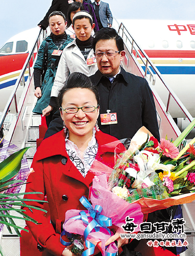 3月14日,出席十一屆全國(guó)人大二次會(huì)議的甘肅團(tuán)代表返回蘭州。本報(bào)記者 呂建榮 攝