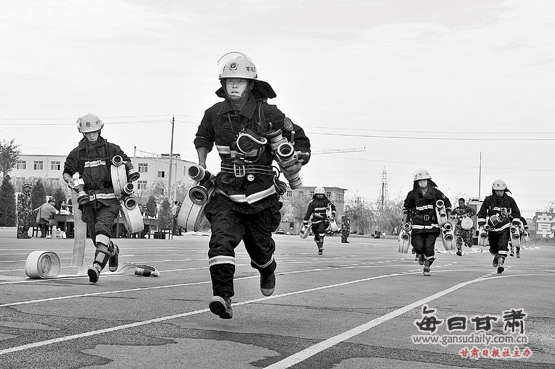 9月12日,為期4天的“甘肅省2010年度打造消防鐵軍”業(yè)務(wù)大比武在消防總隊(duì)訓(xùn)練基地落下帷幕,來(lái)自全省14個(gè)市州的330名隊(duì)員參加了400米疏散物資、水帶連接、救助技術(shù)等9個(gè)項(xiàng)目的角逐。本報(bào)通訊員 周宏平 攝